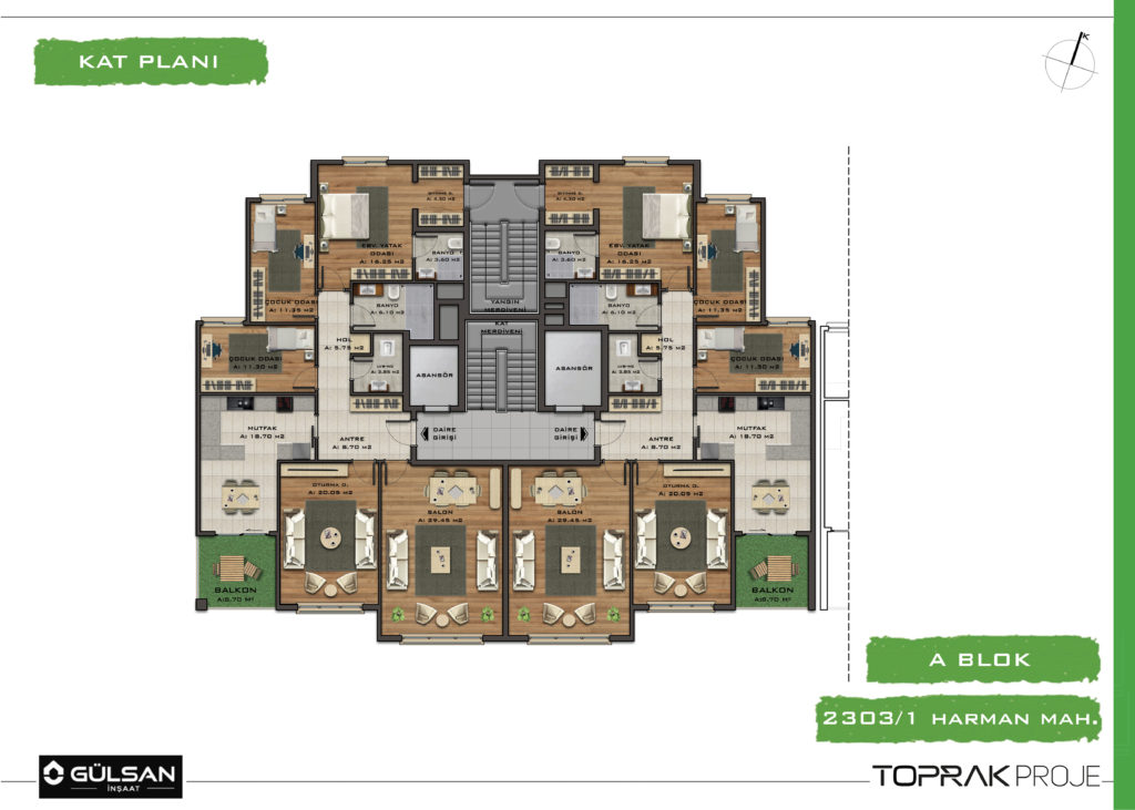 • A Blok 4+1, Brüt 230 m², 18 Daire-3 Dükkan