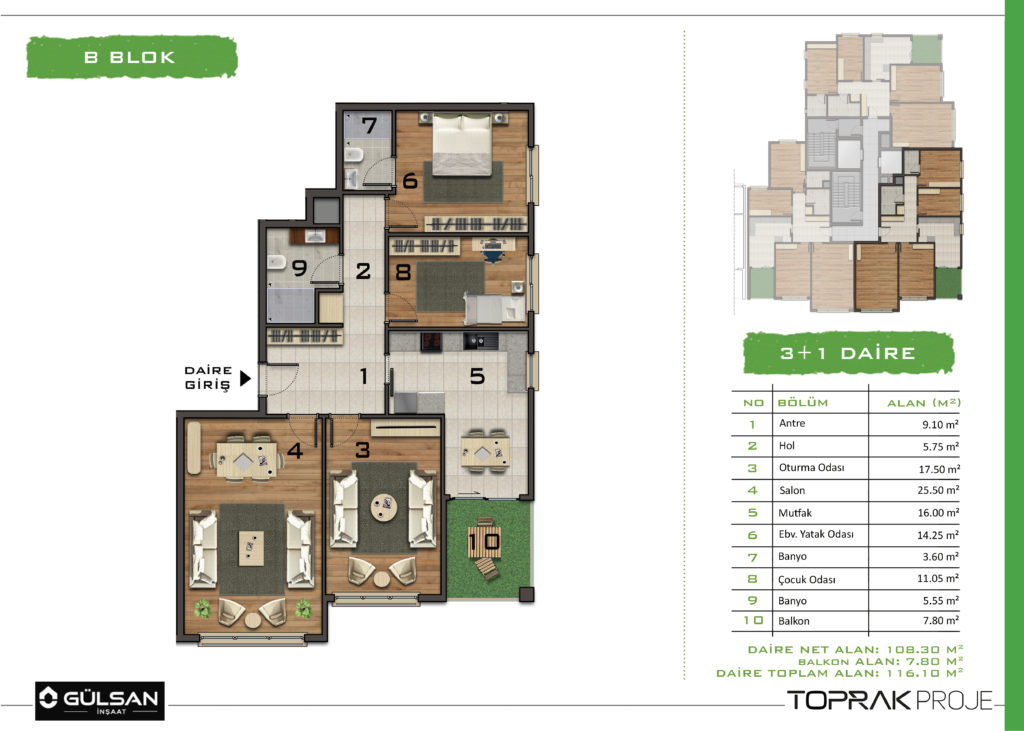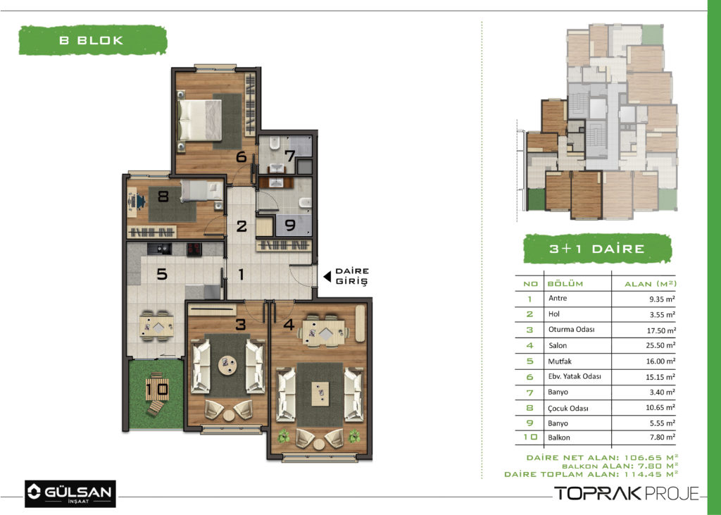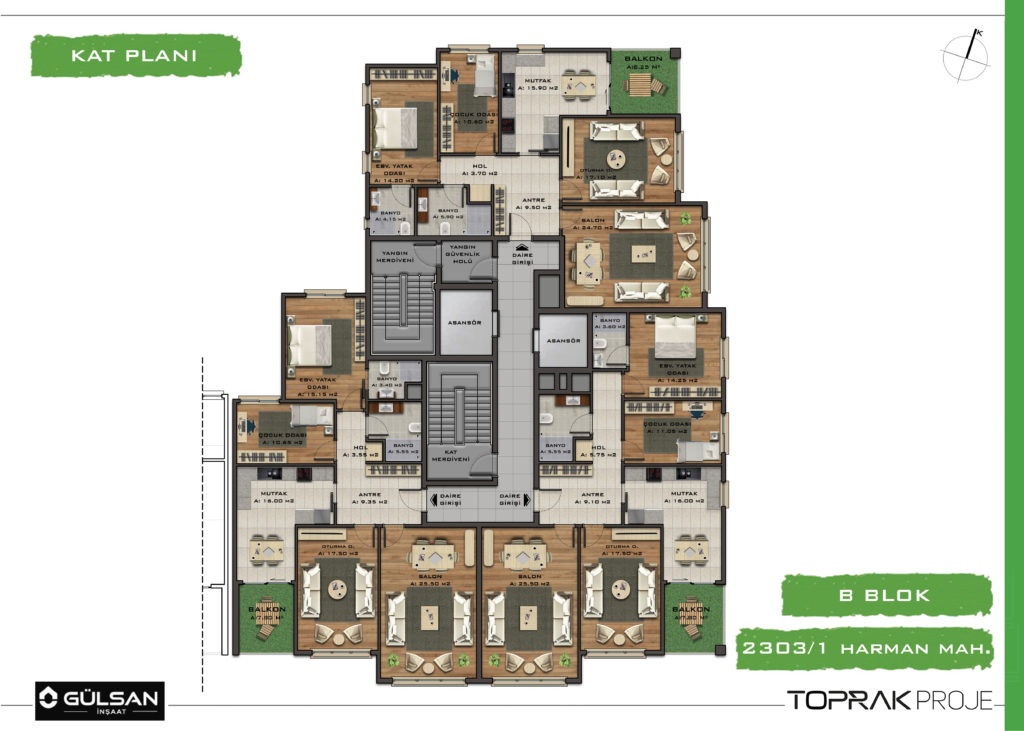 • B Blok 3+1, Brüt 170 m², 27 Daire-3 Dükkan